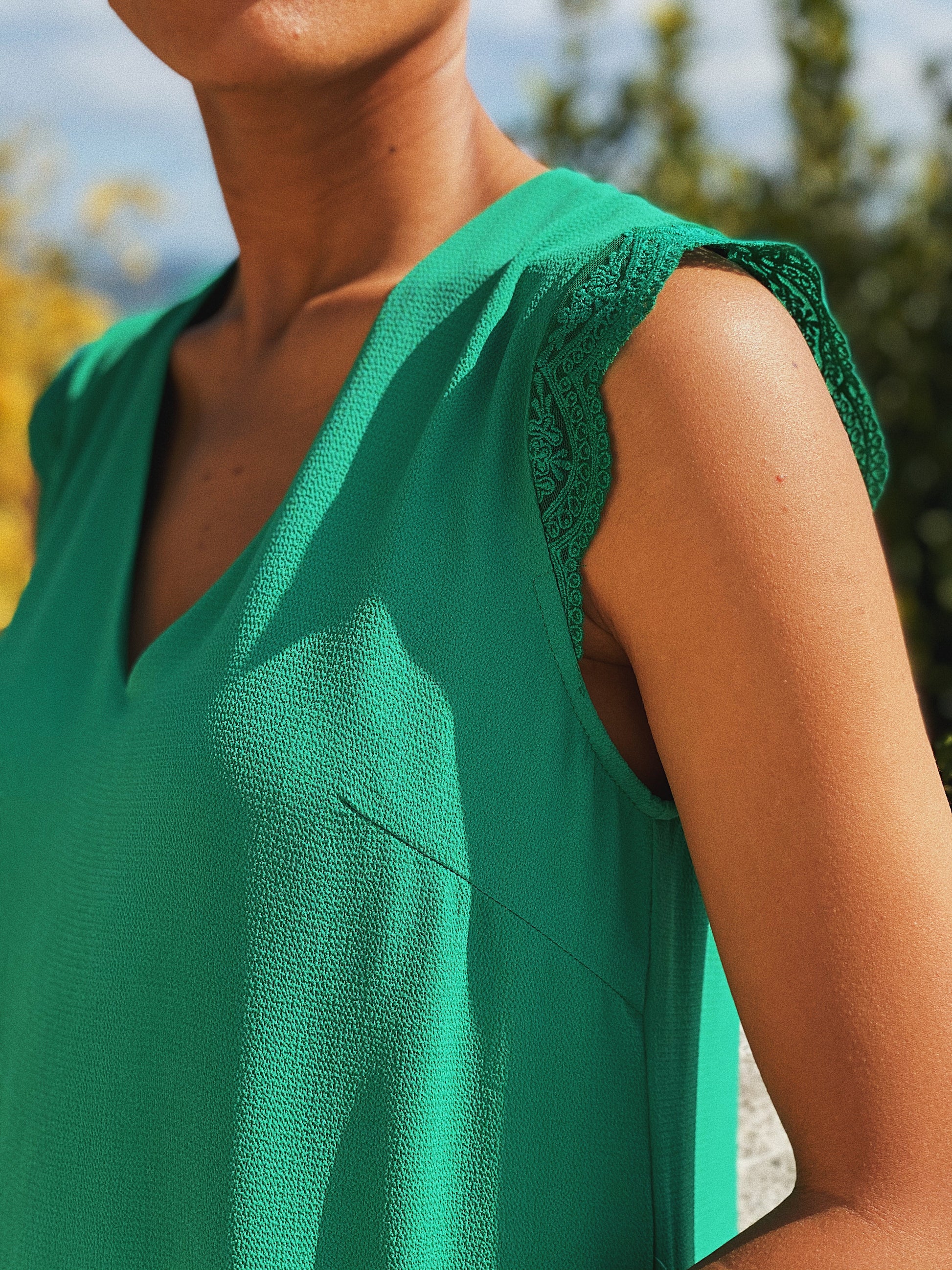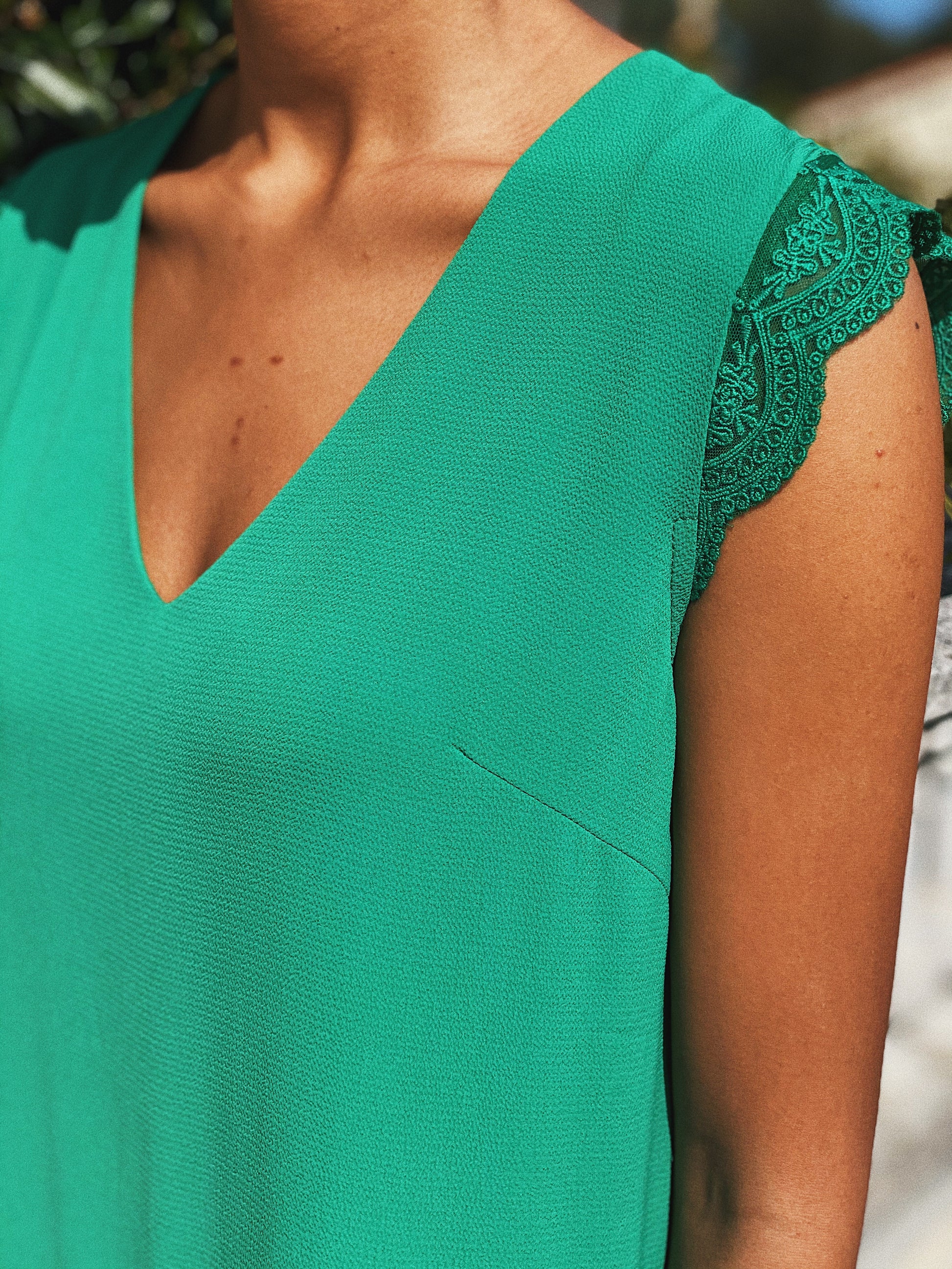 - Dos plongeant en V avec dentelle et noeud à nouer